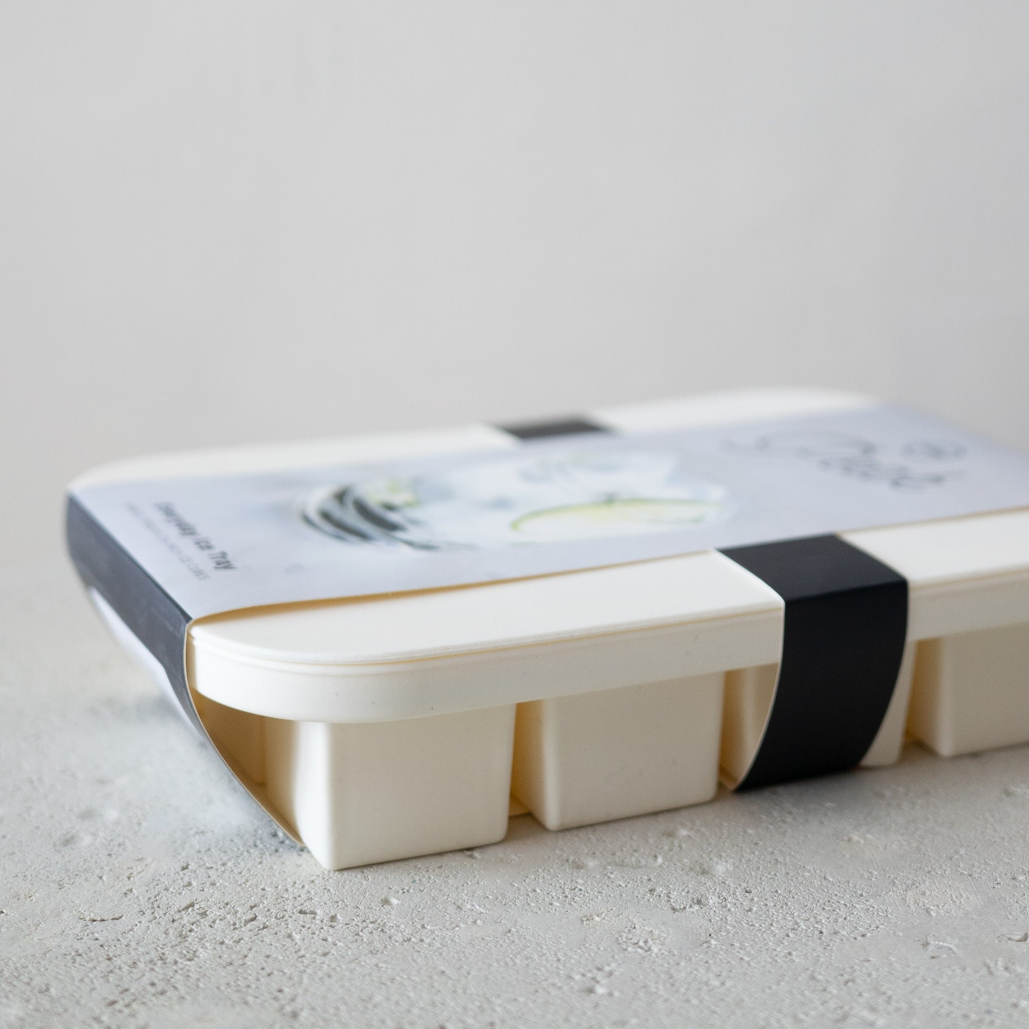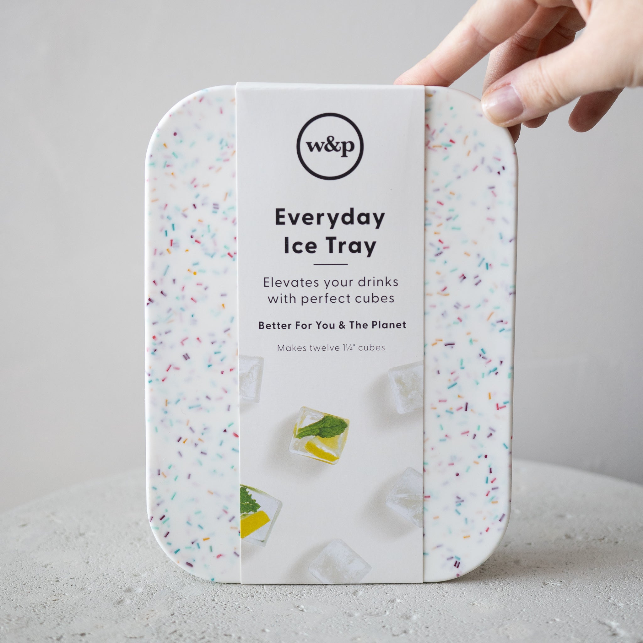 This tray makes twelve ice cubes for your everyday beverage needs. The provided lid blocks out pesky flavors from your freezer, while an internal steel frame makes filling and transporting the tray to the freezer a breeze.