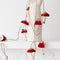 Velvet and paper mushroom garland, red velvet cap with natural paper stem, 72 in