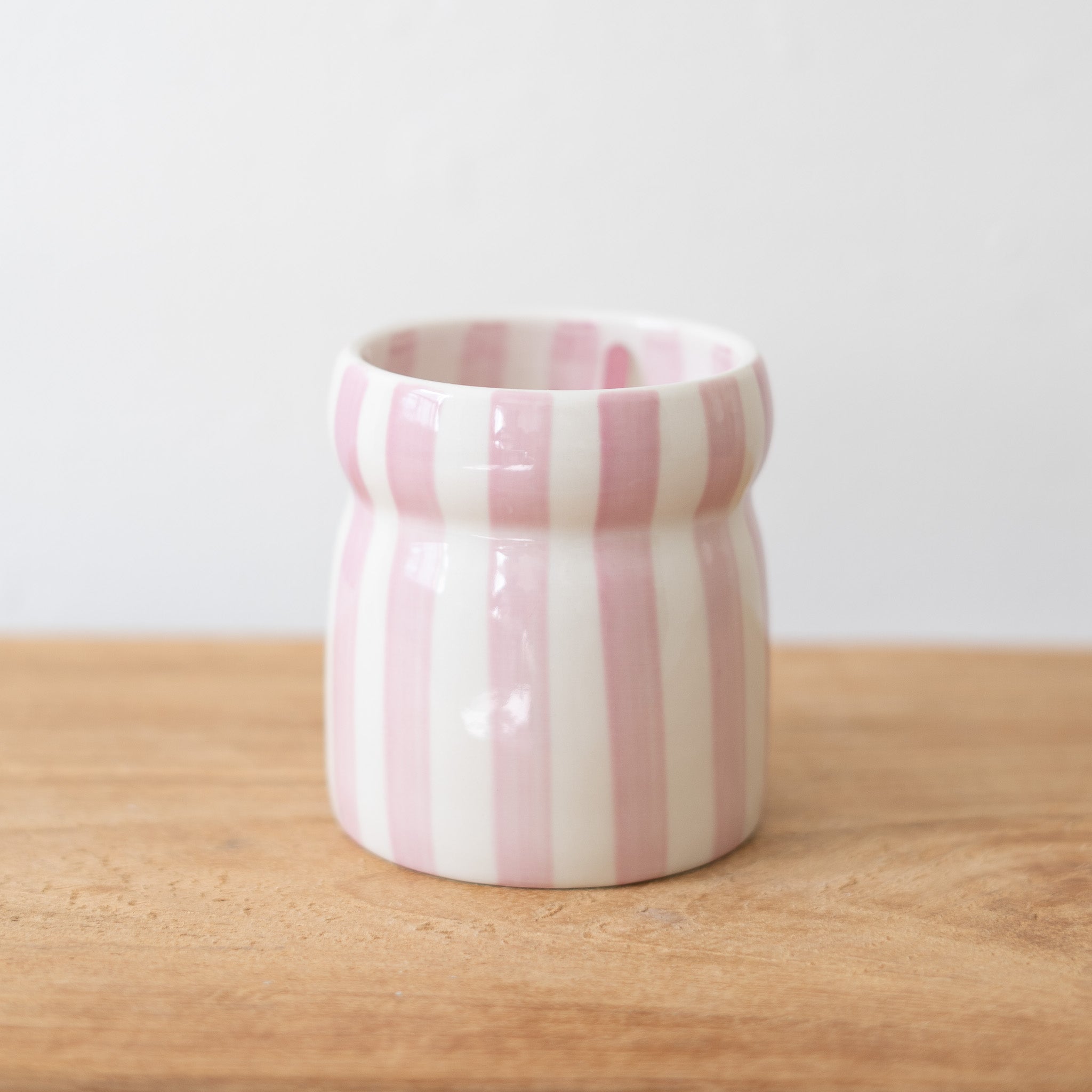 Bring beach vibes home with this 6.5 oz hand-painted candle inspired by striped umbrellas. After enjoying its soothing scent, reuse the food-safe ceramic for cooking or decoration!