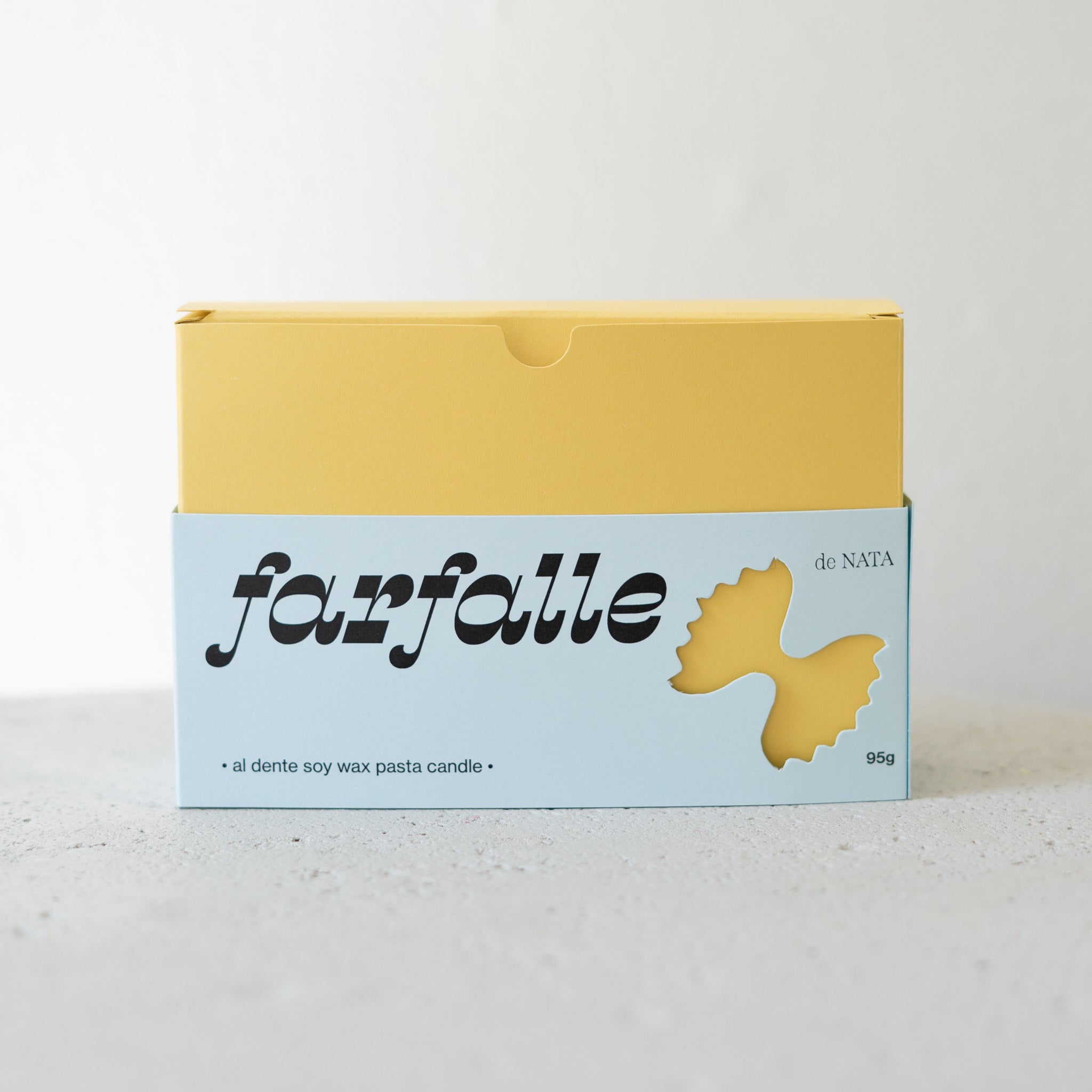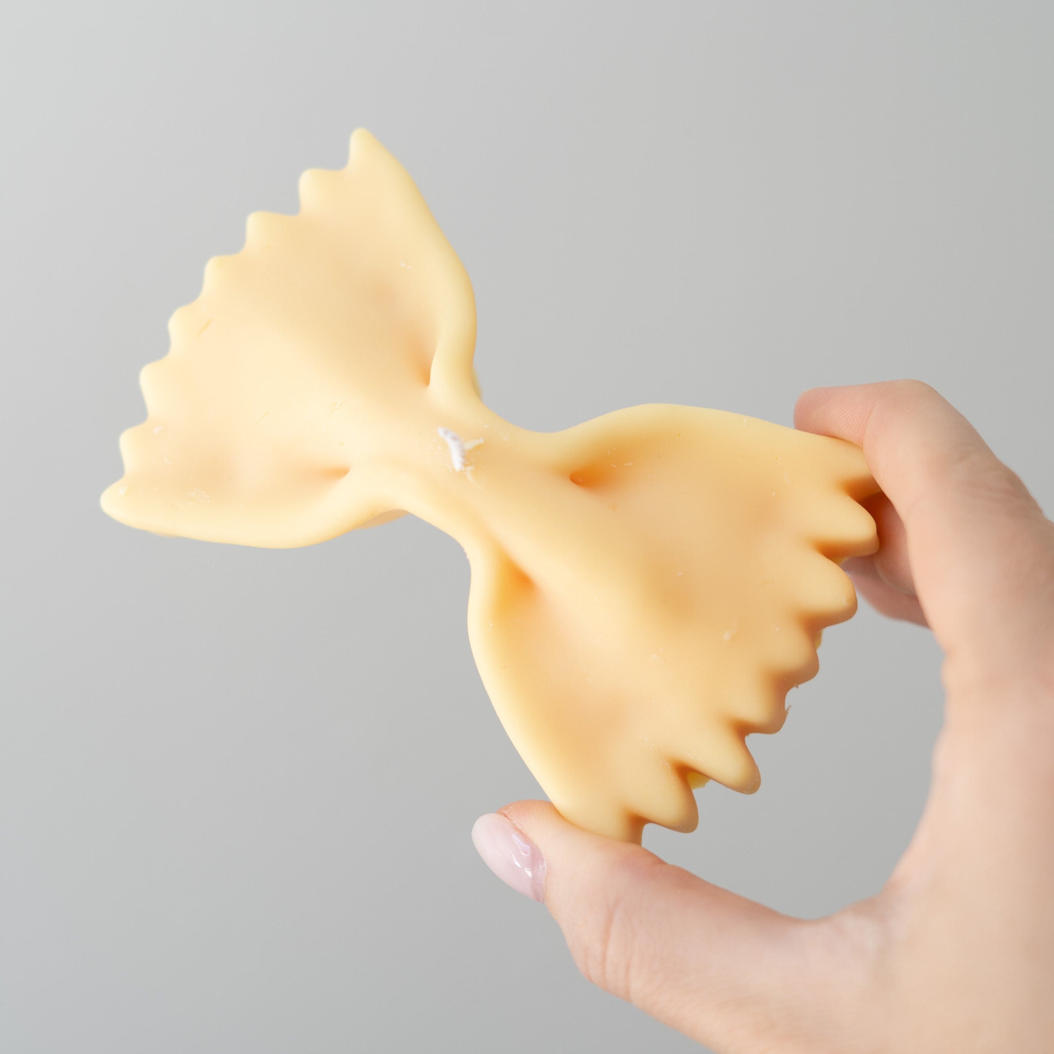 Pasta Perfect! From Nonnas to Nata, the Farfalle Candle is a playful nod to handmade pasta. Shaped like “little butterflies,” it’s a bow-tie for your décor—no sauce required! A must-have for pasta lovers and the perfect conversation starter for your next dinner party. 12cm L x 3.5 H x 7cm W Burn time: 30 min Scented with Jasmine, Neroli & Orange Blossom