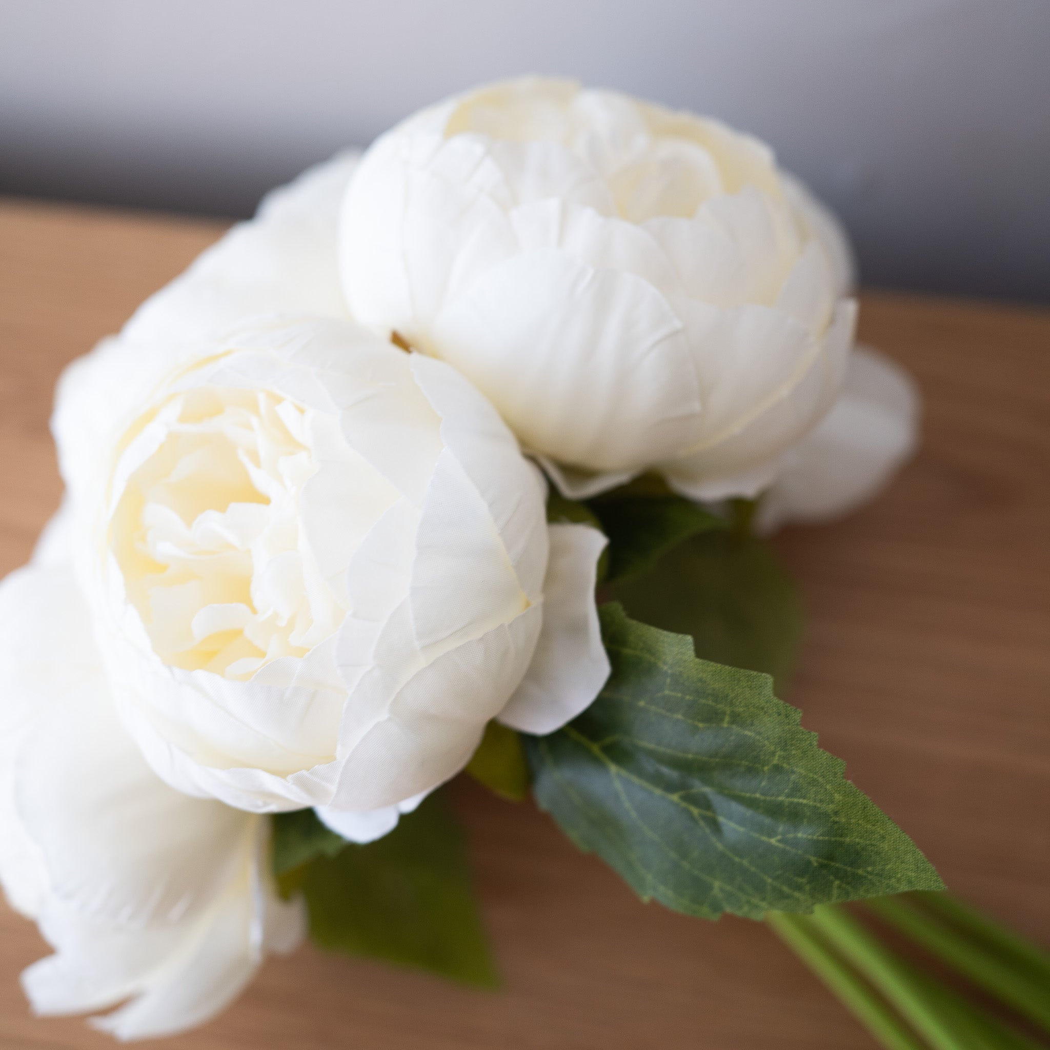 This beautiful Faux Peony Bouquet in White makes a beautiful complement for any occasion. Crafted out of plastic and polyester, this gorgeous bouquet of peonies look just like the real thing – without any of the watering, pruning or withering away.