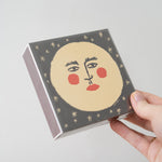 Meet Moon Matches—a delightful square matchbox featuring a smiling moon surrounded by stars. Designed by Tabby Booth, it holds 125 ready-to-use matches and doubles as charming décor for any room. Made from FSC-certified wood with black matches and white tips, letterpress printed, and wrapped in compostable packaging. Function meets personality in one small, thoughtful package.