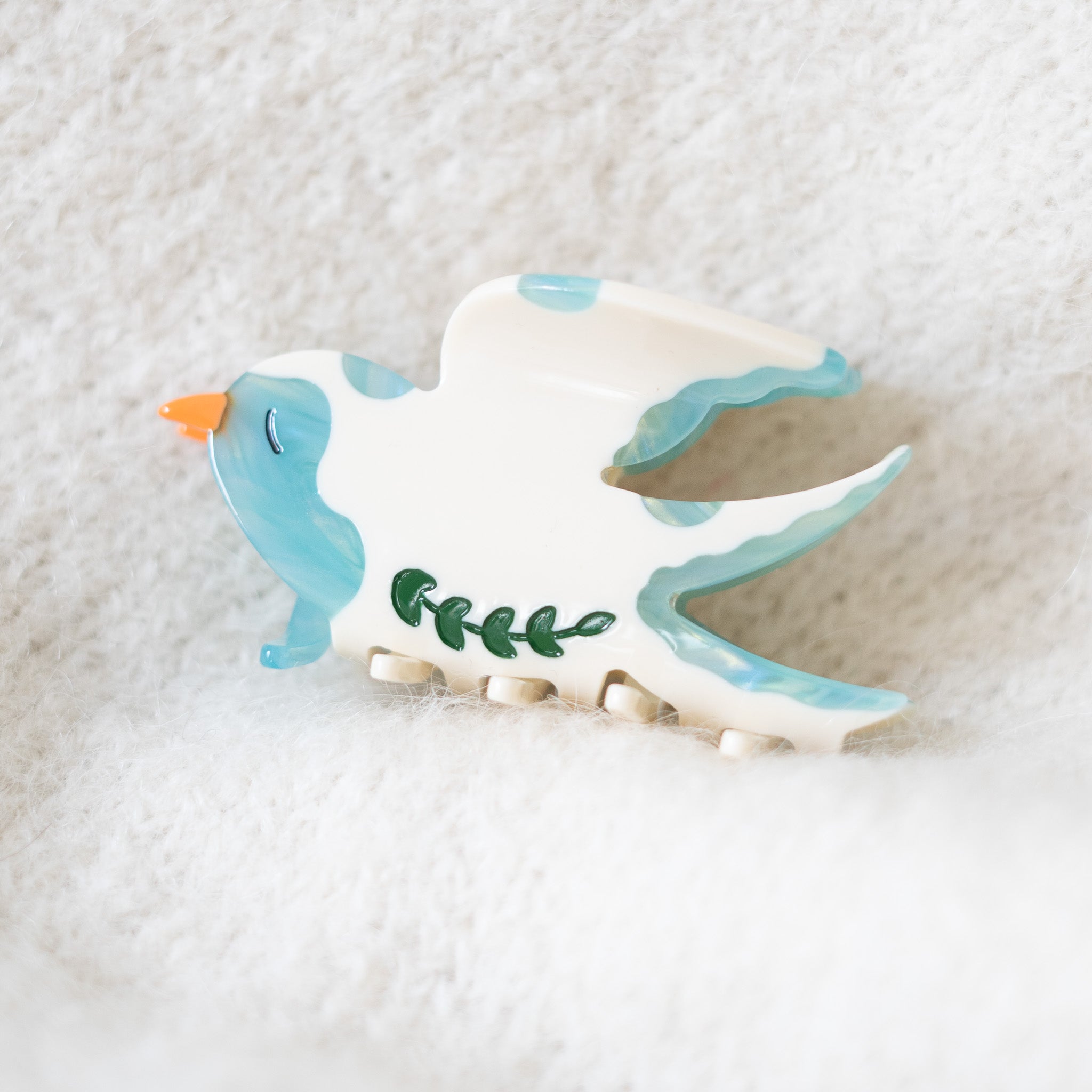 Celebrate the beauty of spring with the Spring Swallow & Leaf Acetate Hair Claw Clip! This unique accessory features a charming swallow bird perched among delicate leaves, perfectly capturing the essence of nature's renewal. Crafted from eco-friendly acetate, this hair claw combines vibrant design with functionality, making it the ideal accessory for both casual and chic spring styles.