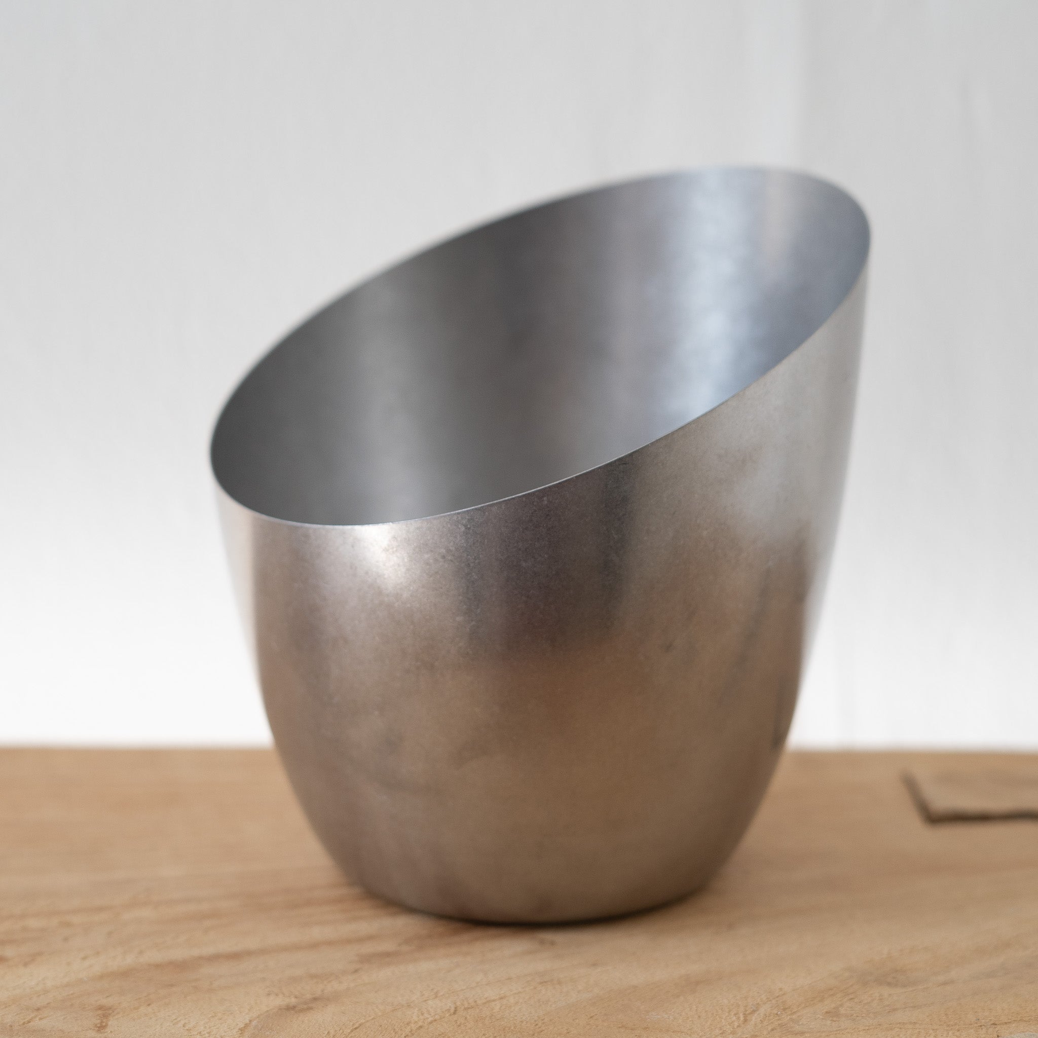 5-1/4" Round x 5-3/4"H Stainless Steel Slanted Container, Brushed Pewter Finish