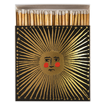 Our signature square matchbox featuring a brassy gold foil sun with an illustrated face and rosy red cheeks. Designed by Tabby Booth.