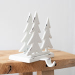 Cast iron stocking holder, trio of trees, antique white finish,5x6 in.